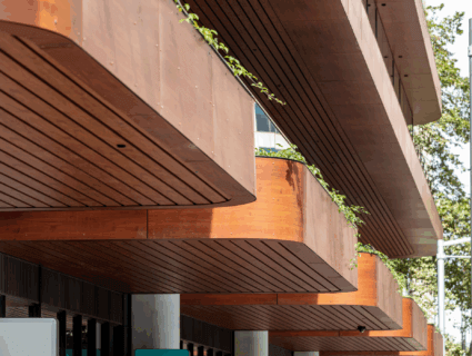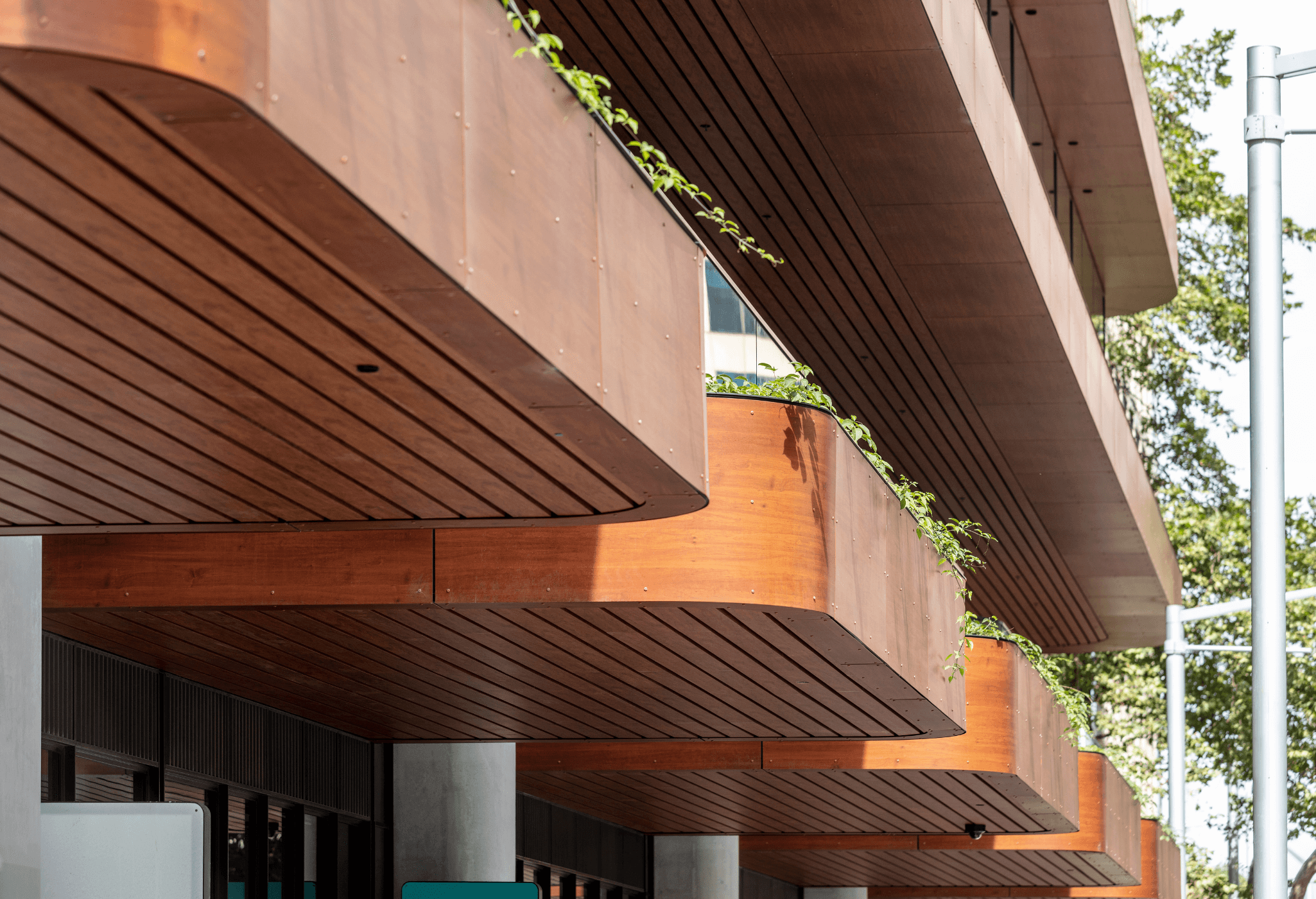 As well as meeting key safety requirements, DecoPanel® is made from 100% recyclable aluminium and the DecoWood® finish does not involve using harmful VOC’s, an important element for the building’s Premium Grade, 5 Star Green Rating.