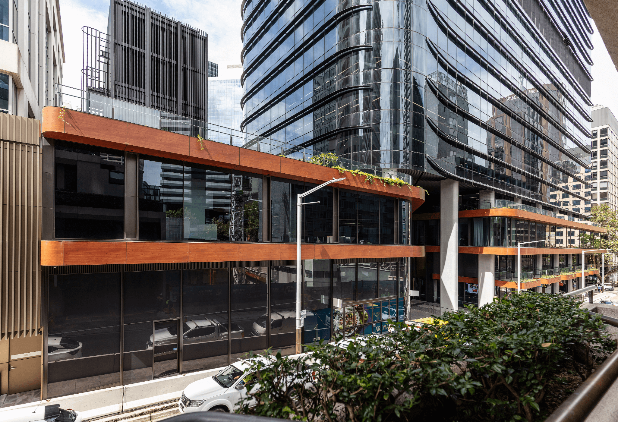 The DecoPanel® flat sheets have been strategically wrapped around the lower half of the building’s façade bringing a warmth and sophistication to North Sydney’s bustling streets. The use of the 2mm aluminium panelling also meant that the panels could manage the slight curves required in the design without any pre-machined bending.
