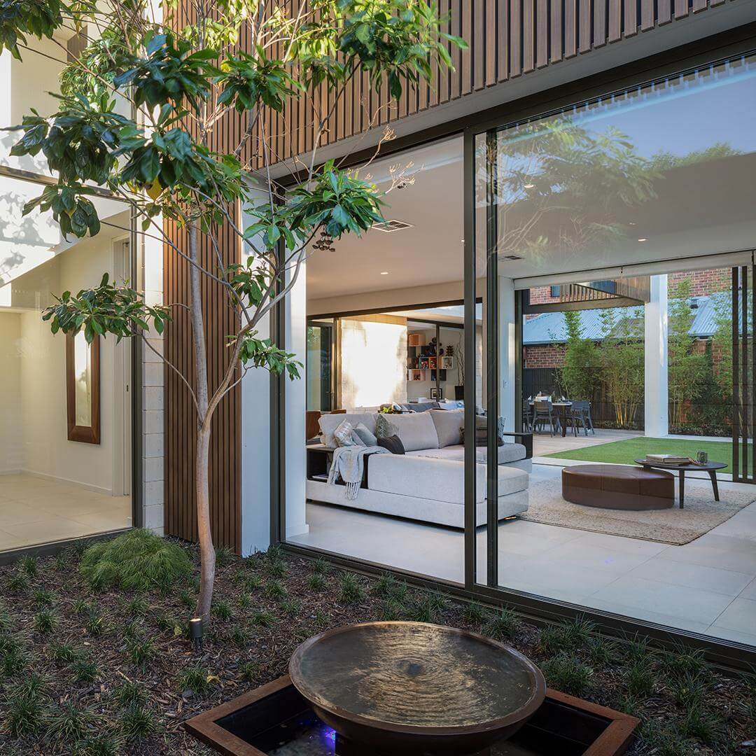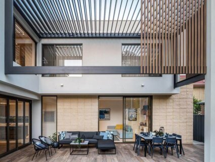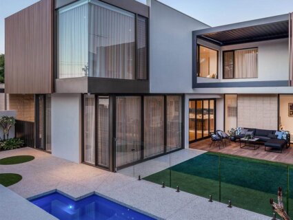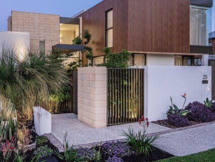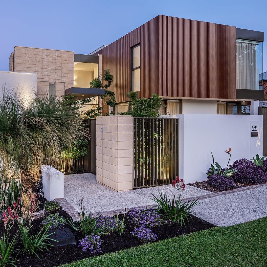 Due to its corner block positioning, Daniel Lomma designed a façade that looked aesthetically pleasing from all views on the street. The exterior features an impressive mixture of timber-look battens with smooth and split-face masonry.