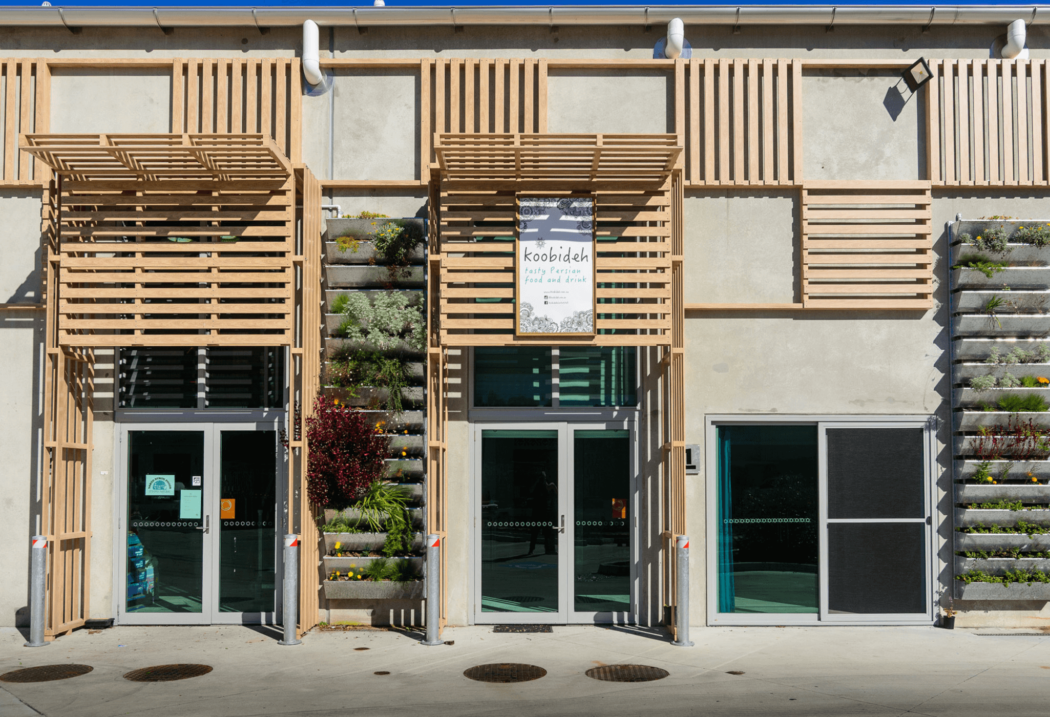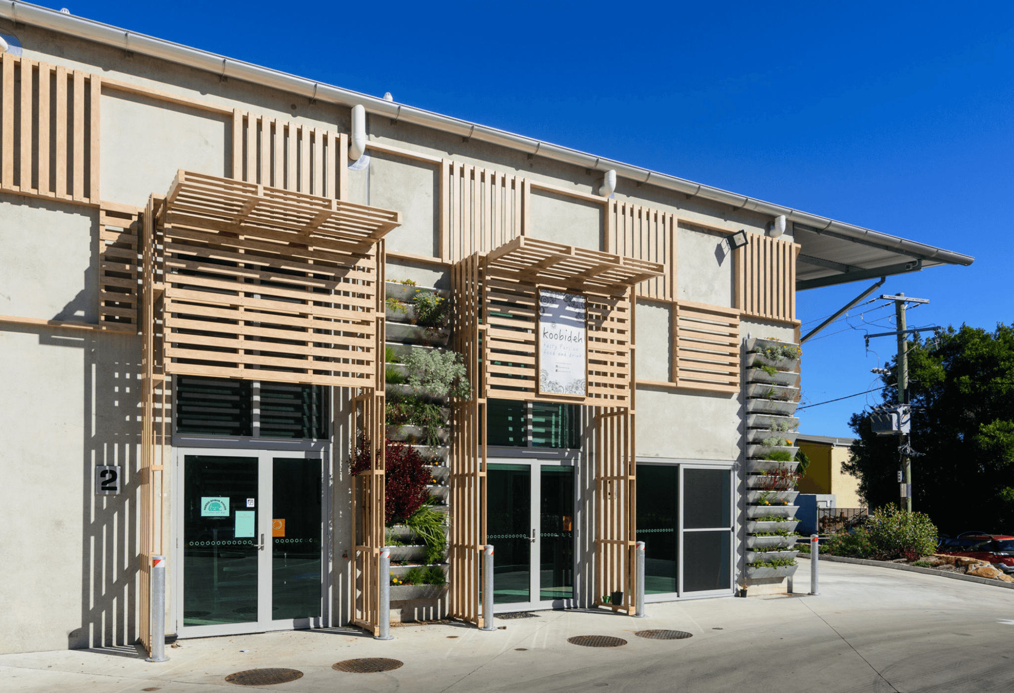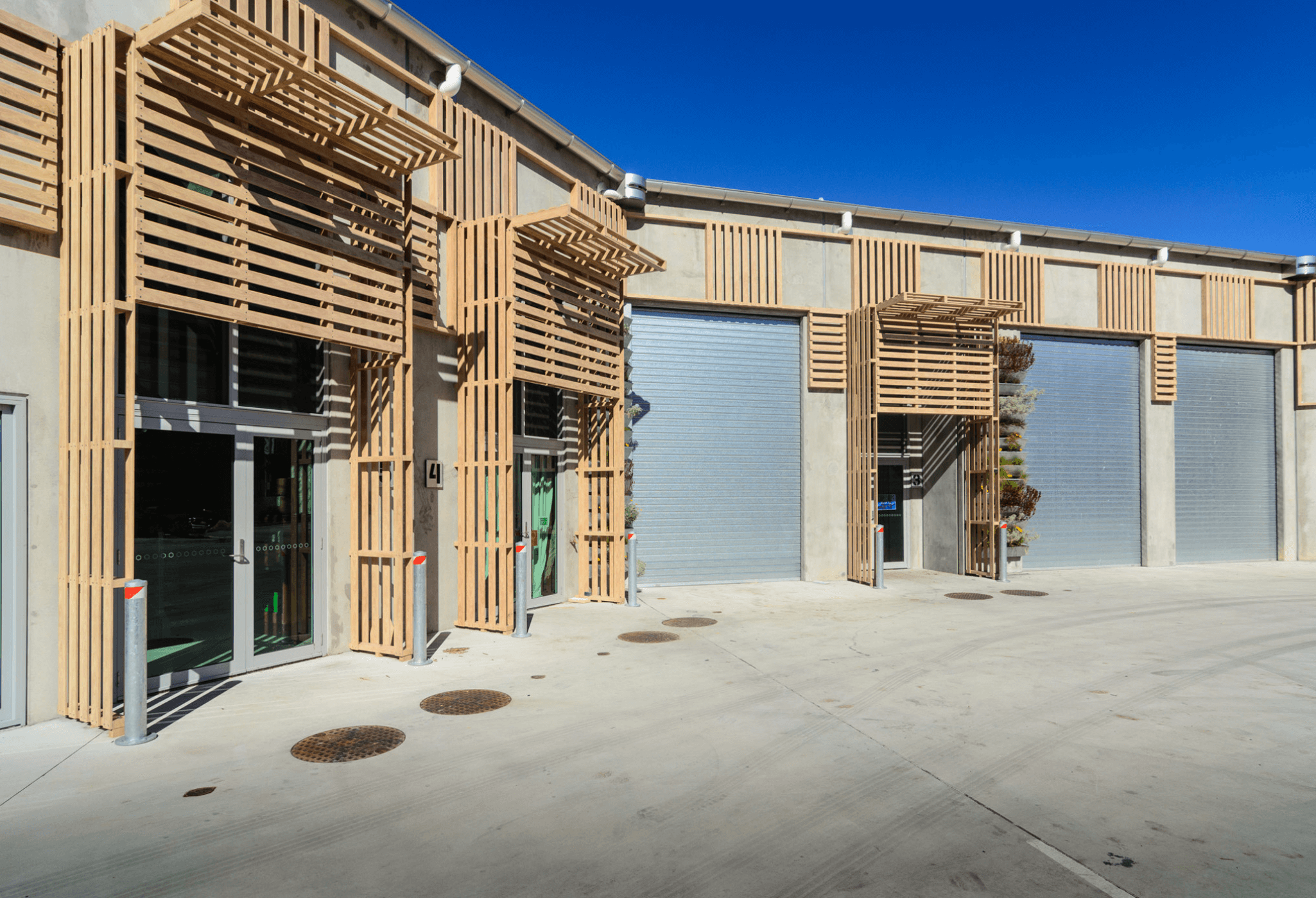 The client wanted the natural look and feel of timber to complement the theme and objective of an organic food production precinct, but timber was an impractical choice due to its coastal location.