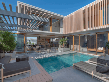 Among the home’s many luxury features is the visually striking vertical DecoBatten BBQ station, located on the rooftop of the home. Multiple sized battens including DECO’s new 25x50mm designer series were used around the BBQ station to create a unique effect. The clients opted to use DecoBatten® in this space as it is a non-combustible and fire safe product.