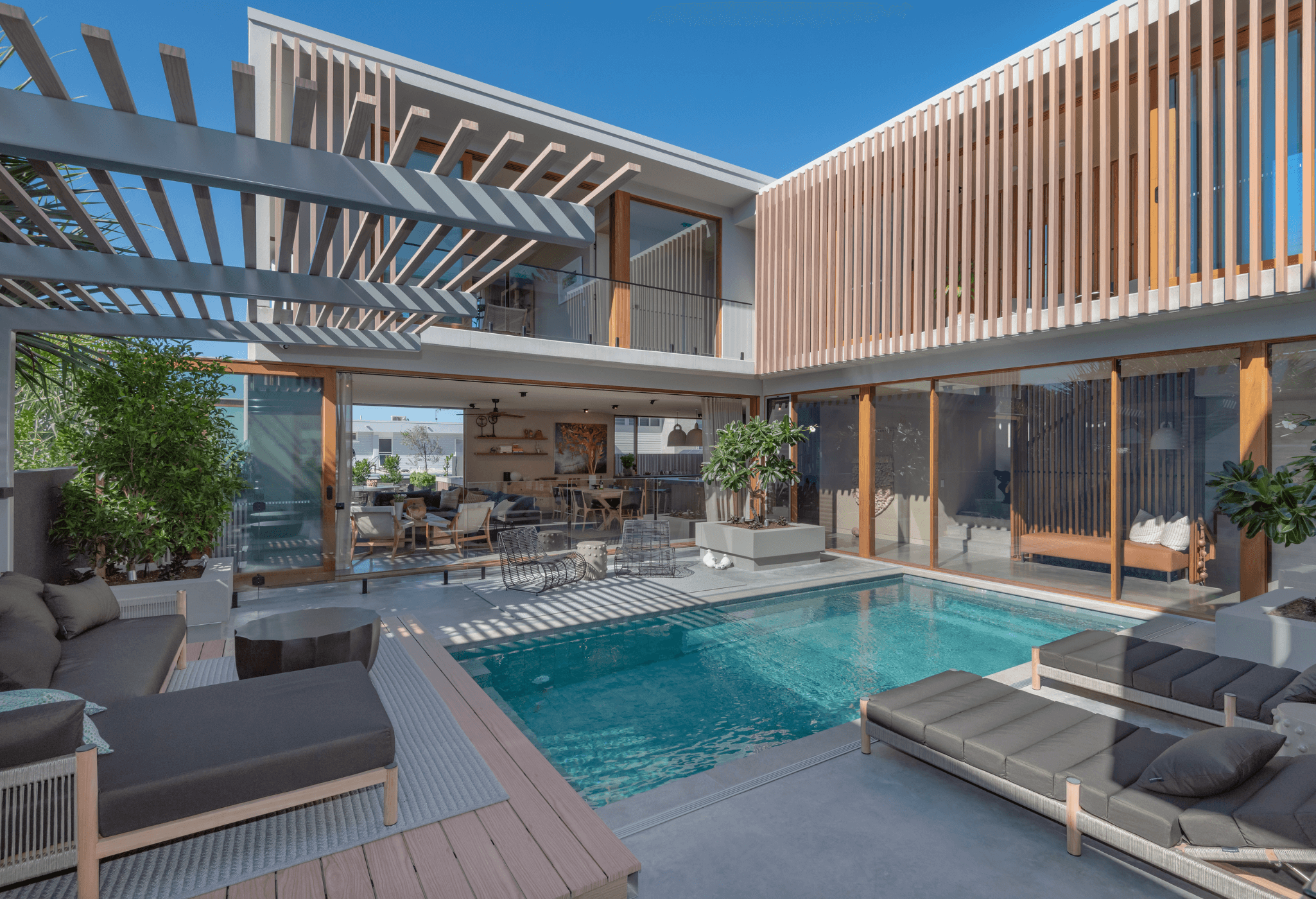 Around the pool cabana, a timber-look aluminium deck was installed in the same colour but with a slip resistant finish. Replicating the form, feel and appearance of a natural timber deck, DecoDeck® offered an effortless decking solution that is chlorine resistant and safe for use around pools and spas.