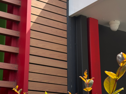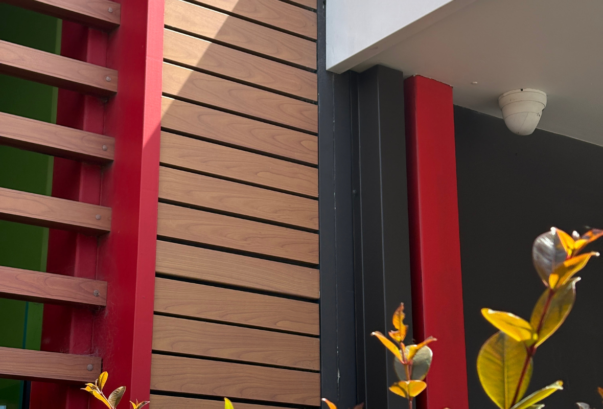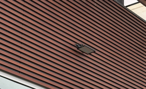 Since its installation in 2010, the DecoWood® slat façade has retained its natural timber appearance and continues to meet the Australian Standard for thermoset powder coatings (AS 3715), which permits only minimal fading over time. The grain structure remains intact, with some shaded areas still close to their original condition. Importantly, the aluminium remains structurally sound, and the DecoSlat® joins are strong and unchanged over time.