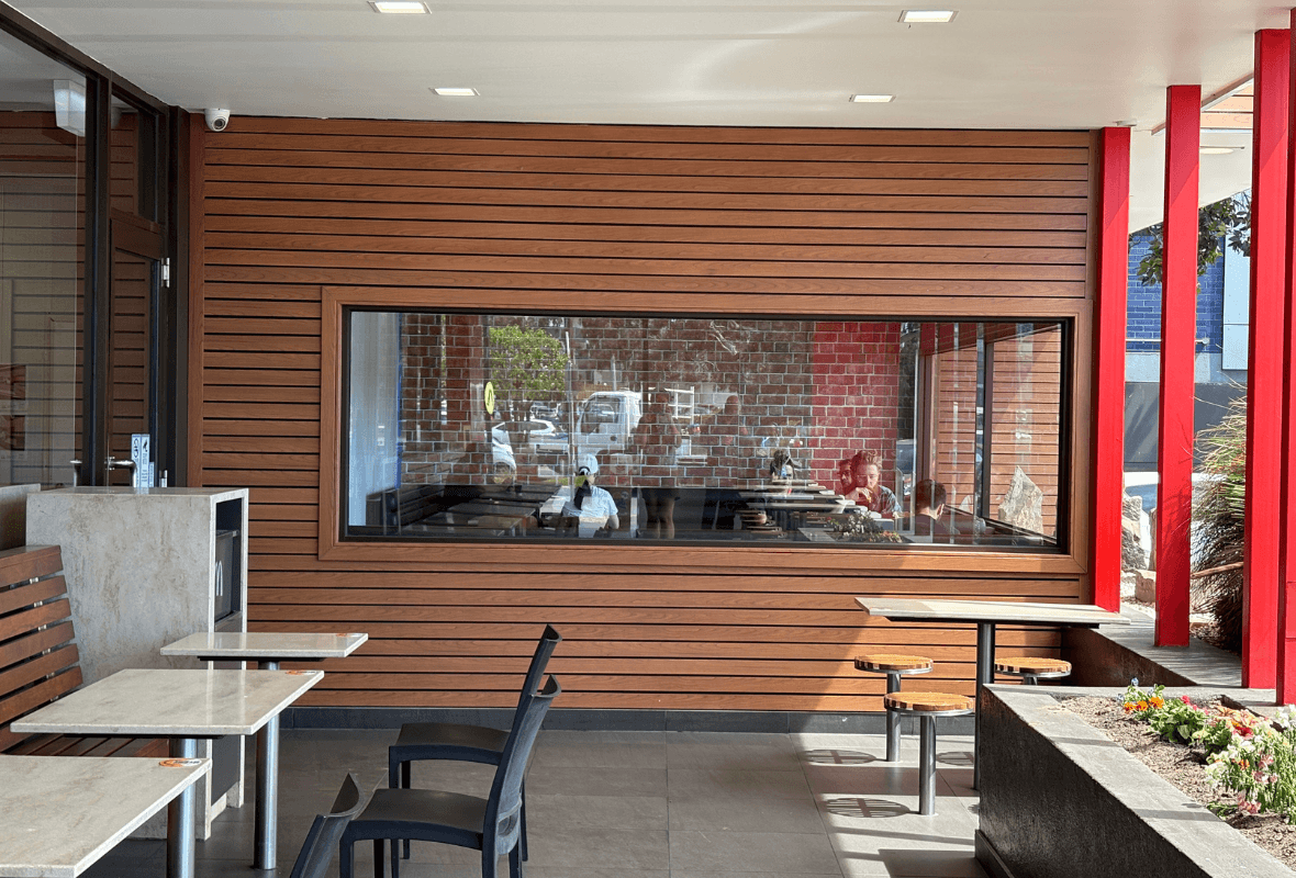 Located on a busy intersection in Melbourne’s northern suburbs, McDonald’s Preston II is a highly exposed site. With its north-facing facade and heavy pollutants from traffic on both Bell Street and St Georges Road, the restaurant required a highly durable product to withstand these conditions.
