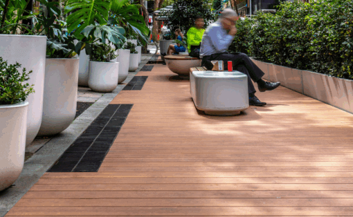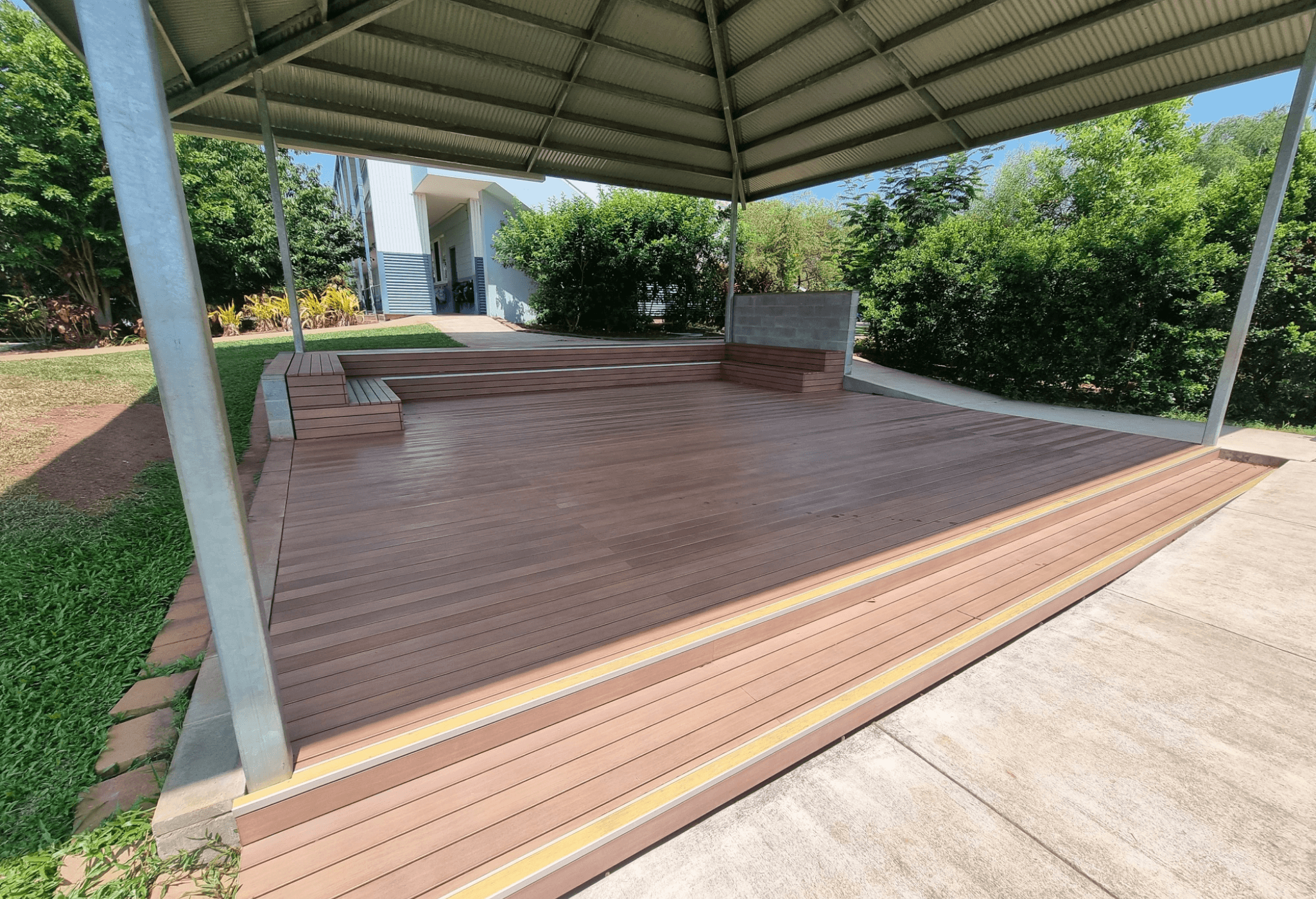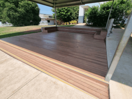 The lightweight, low-maintenance decking board provided not only the ideal deck for a school setting, but a perfect amphitheatre for students to sit on. Because DecoDeck® does not exceed ambient temperature, and conducts heat evenly across the board, this also made it a suitable product for students to sit on, even on hot Darwin days.