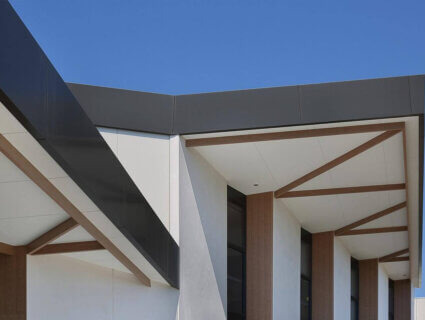Patients are pleasantly welcomed on arrival by the clean and natural-look materials featured on the façade of the building. Custom finished aluminium flat sheets were chosen to create a contemporary yet relaxed appearance to the entrance. In addition to this, timber-look DecoBattens flow seamlessly inside the centre, enhancing the tranquil ethos of the facility.
