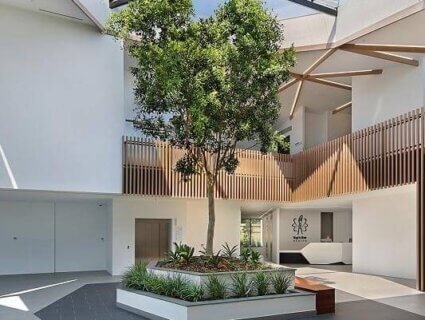 In line with a growing understanding of the correlation between design and wellbeing, this state-of-the-art medical centre in Victoria’s Lower Templestowe provides its patients with modern facilities and a place of tranquillity. The two-storey medical centre has a day hospital, therapy gym and consultation suites as well as a two-level basement carpark.
