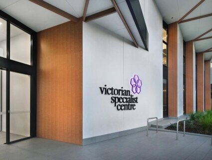 DecoBatten and DECO’s custom flat sheets by DecoPanel offered a natural and warm aesthetic to the facility without the maintenance associated with using real timber products. The high-quality finish reflects the branding of the Victorian Specialist Centre and balances well with the leafy surrounds of the landscape.