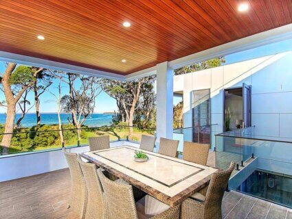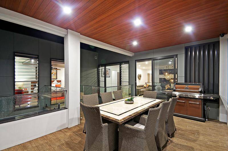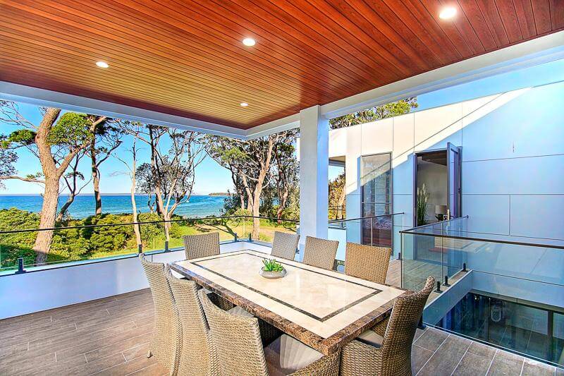 To achieve a natural timber look without any ongoing maintenance, DecoClad’s 180mm V-Groove aluminium cladding finished in DecoWood “Western Red Cedar” was selected for all external entry and alfresco ceilings. Selected not only for its natural woodgrain appearance and low maintenance features, the Super Durable™ DecoWood marine grade powder coating also offered extra durability due to the proximity to the ocean and salt spray.